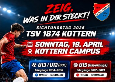 Unter diesem Motto veranstaltet die Jugendabteilung des TSV 1874 Kottern einen Sichtungstag für die U13 BOL (Jg. 2014-2016)…