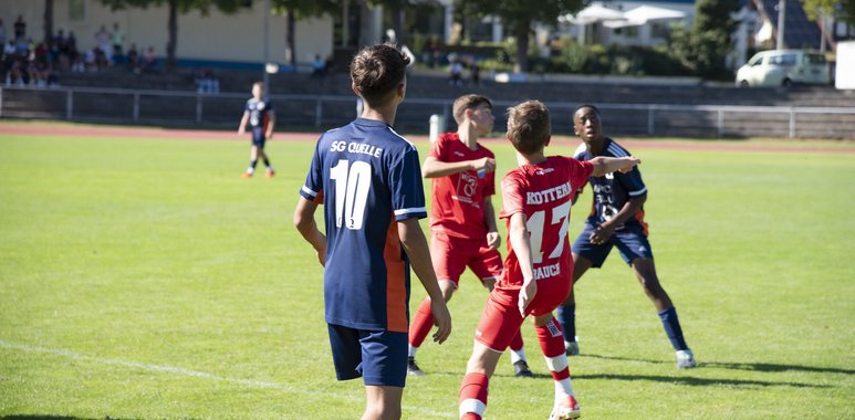 Die weiteste Auswärtsfahrt der Vorrunde bei der SG Quelle Fürth endete für unsere Jungs durchaus positiv. Nach verhaltenem Begin und Abtasten beider Teams in den Anfangsminuten, war es Ilhan Elmas, der nach einem weiten Ball aus der eigenen Hälfte seinen Gegenspieler überlief. Sein Lupfer über den herauseilenden Keeper landete in der 4. Min. leider nur am Querbalken. Von Minute zu Minute legten beide Teams Ihre Anfangsnervosität ab und die Torraumaktionen häuften sich. In der 8. Minute dann der frühe Führungstreffer für die Kotterner. Sam Haslach verwandelte einen dirkekten Freistoß aus 20m in den Winkel, zur 1:0 Führung.